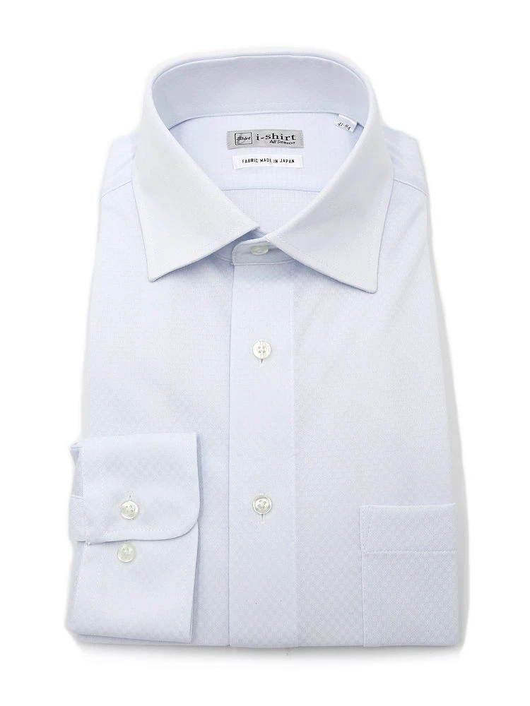 【完全ノーアイロン】アイシャツ セミワイド ストレッチ 吸汗速乾 織柄スクエア ワイシャツ i-shirt 通年(サックス)
