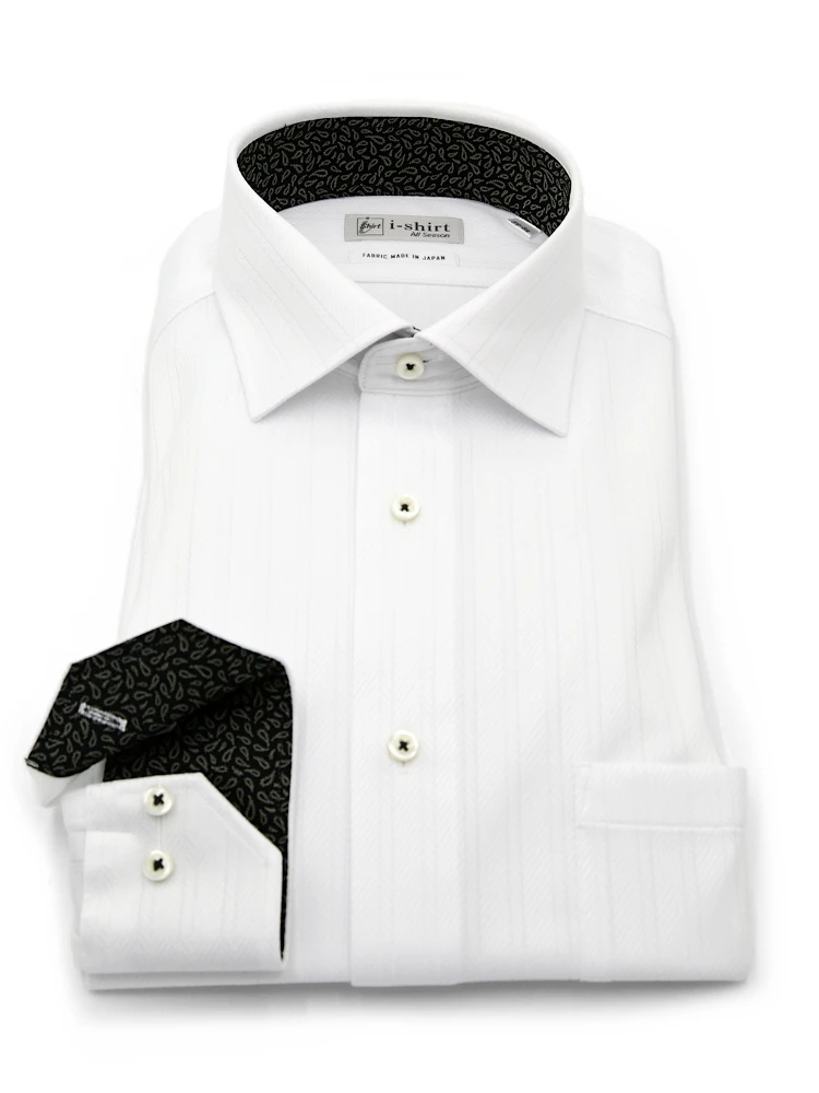 【完全ノーアイロン】アイシャツセミワイドストレッチ吸汗速乾織柄スクエアワイシャツi-shirt通年