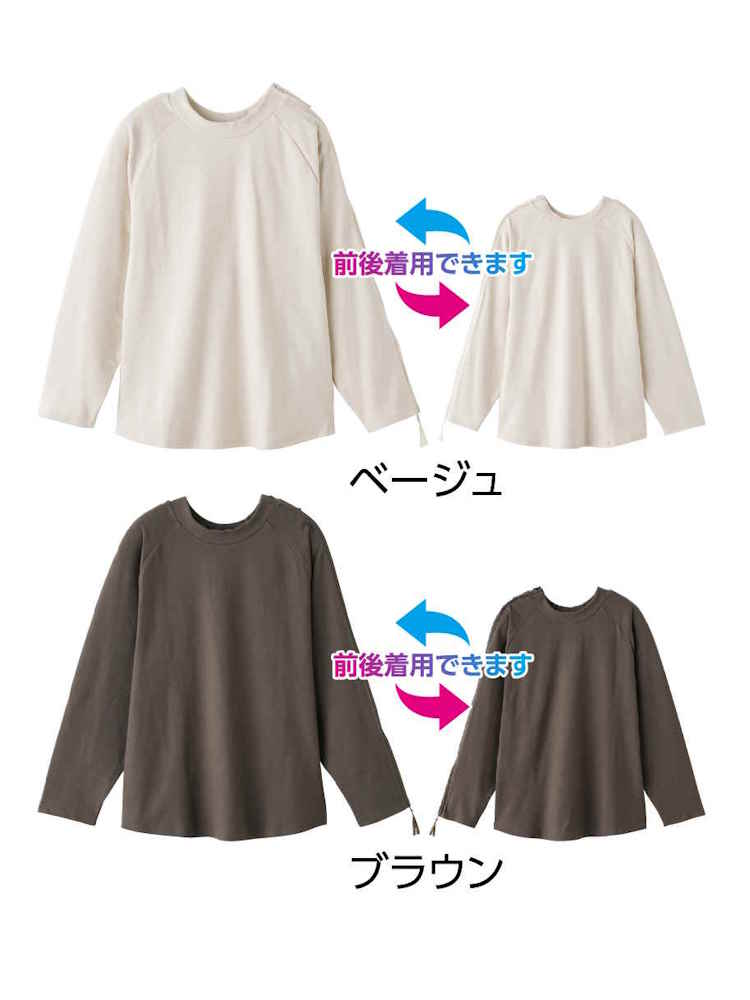衿ぐりから袖口にかけてファスナーなので脱ぎ着が簡単。拘縮した腕や点滴・検温などに便利。