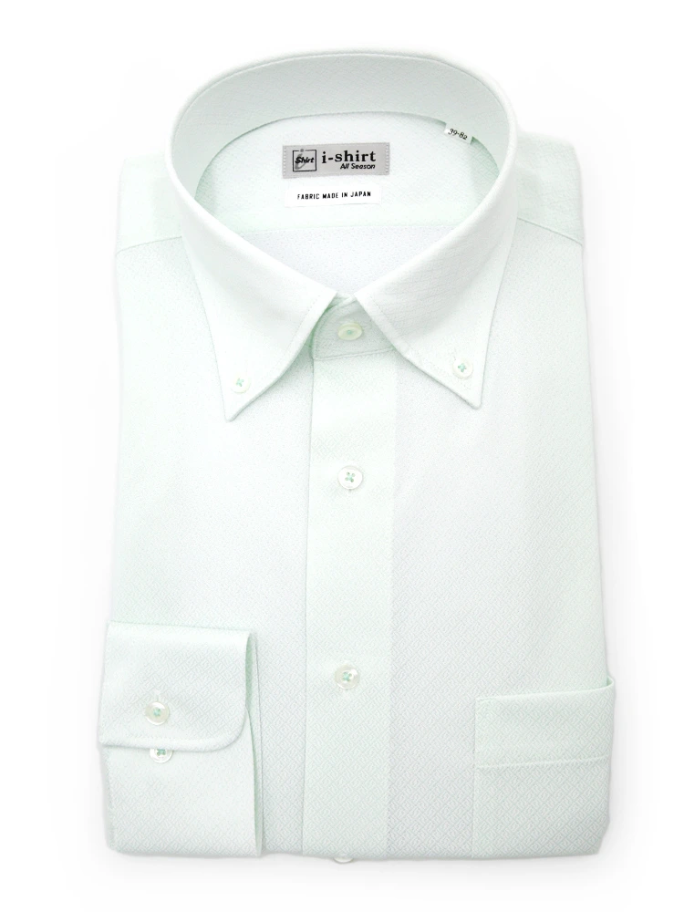 【完全ノーアイロン】長袖 アイシャツ ボタンダウン 吸水速乾 ストレッチ ダイヤ 織柄無地 ワイシャツ i-shirt 通年(L.グレー)