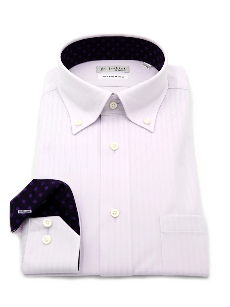 • ラベンダー 【完全ノーアイロン】長袖 アイシャツ ボタンダウン ストレッチ 吸汗速乾 シャンブレーストライプ ワイシャツ i-shirt 通年 1375816284