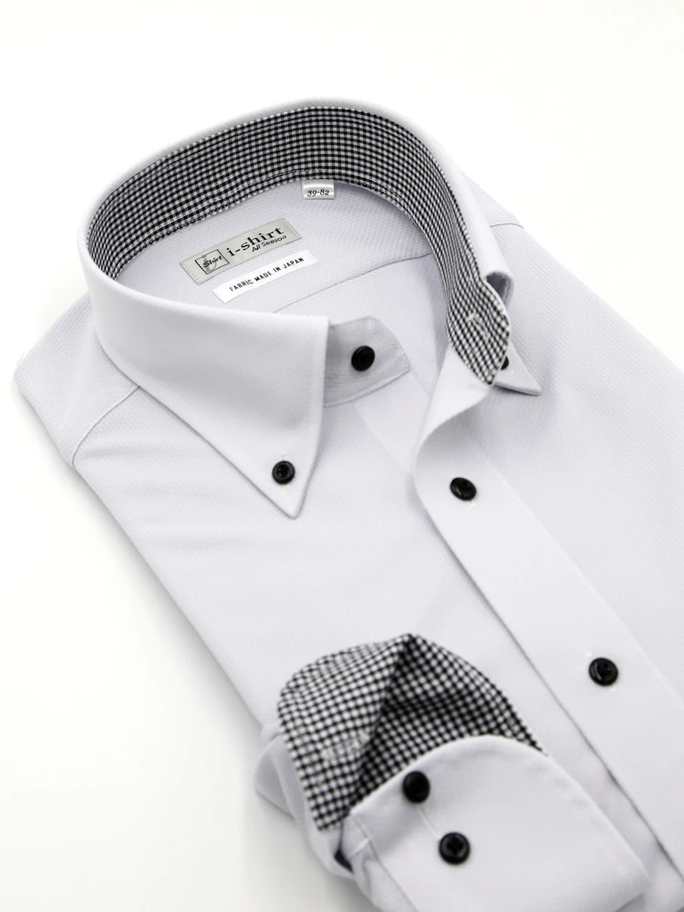 【完全ノーアイロン】長袖アイシャツボタンダウン織柄無地市松柄ストレッチ吸汗速乾ワイシャツi-shirt通年