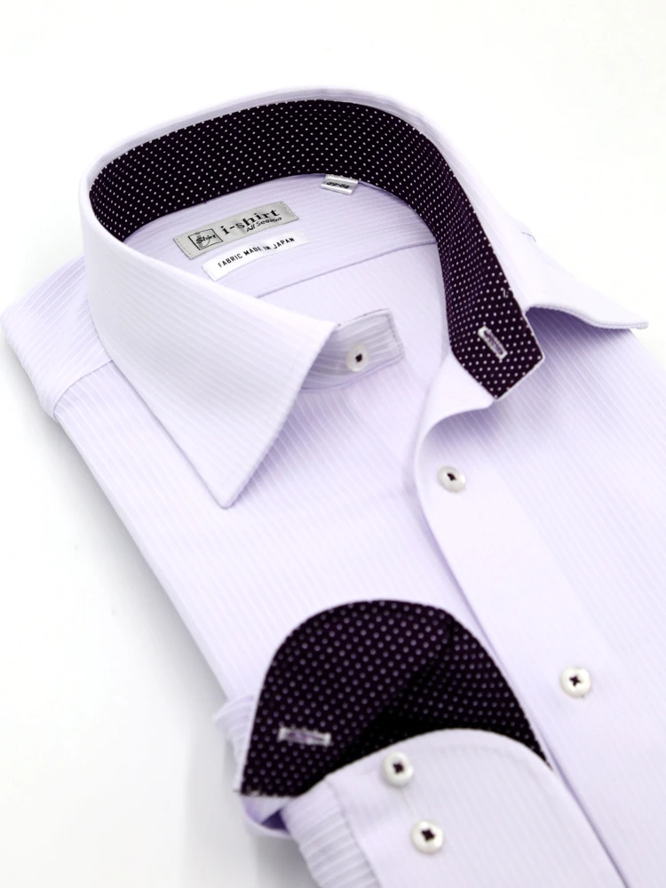 【完全ノーアイロン】長袖 アイシャツ セミワイド ストレッチ 吸汗速乾 シャドウストライプ ワイシャツ i-shirt 通年(ラベンダー)