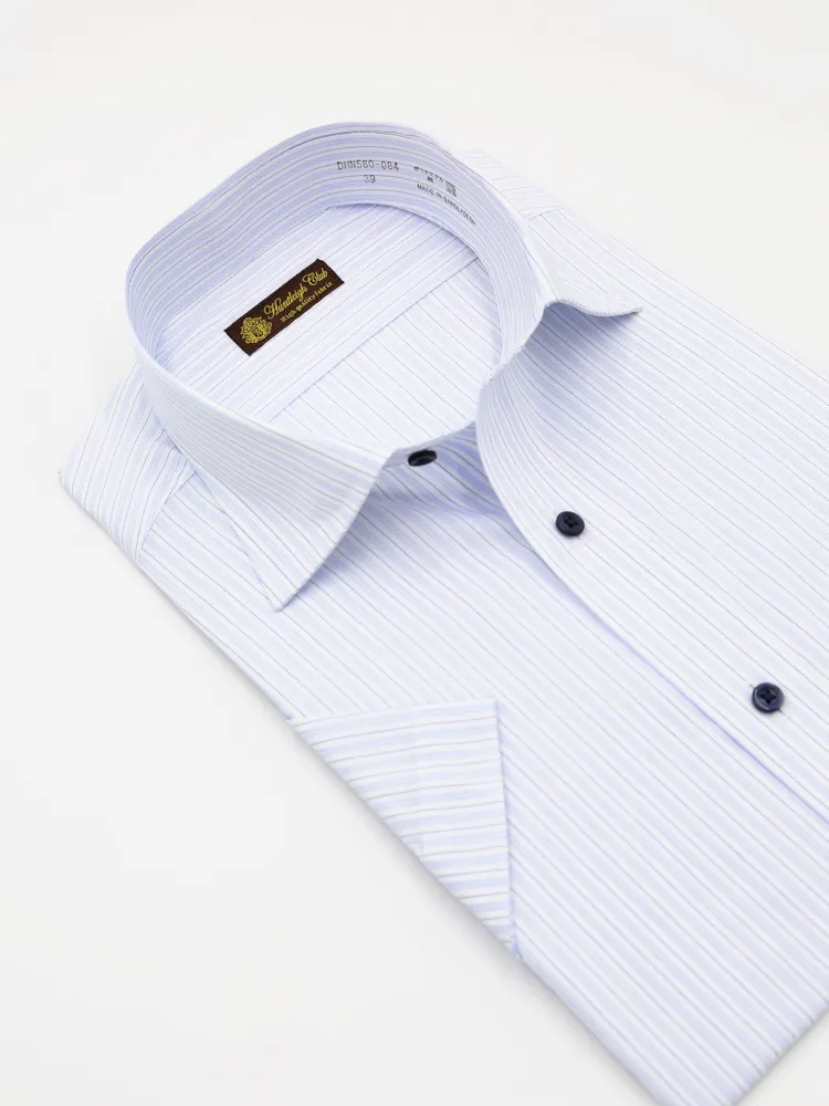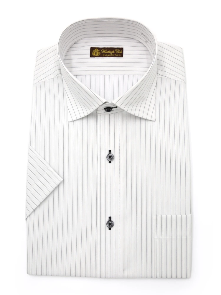 【形態安定】半袖 ワイシャツ セミワイド ストライプ ハントレークラブ 春夏