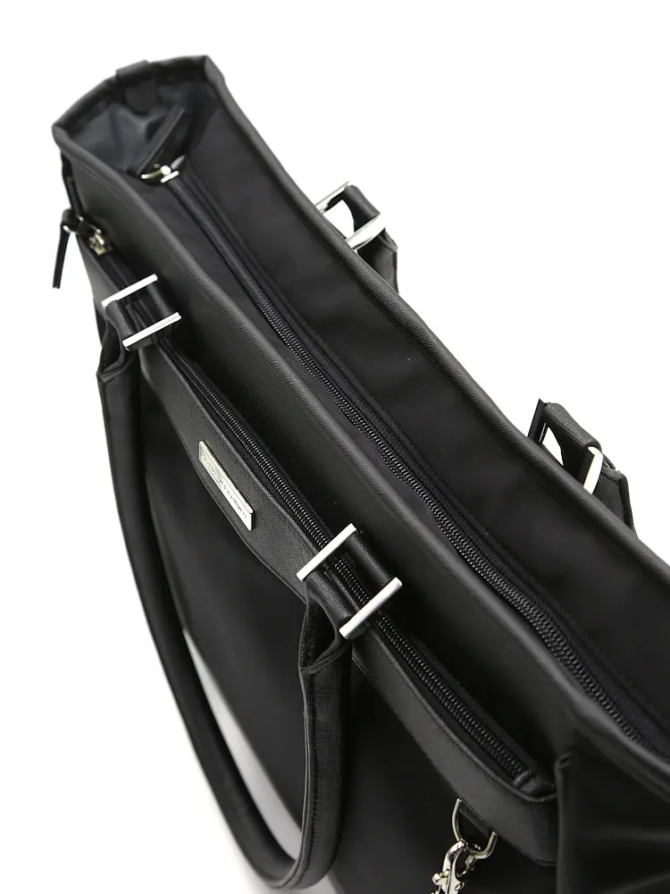 【KATHARINE E HAMNETT-キャサリン・イー・ハムネット-】トートバック ナイロン×サフィアーノ調 多収納 無地 通年(ブラック)