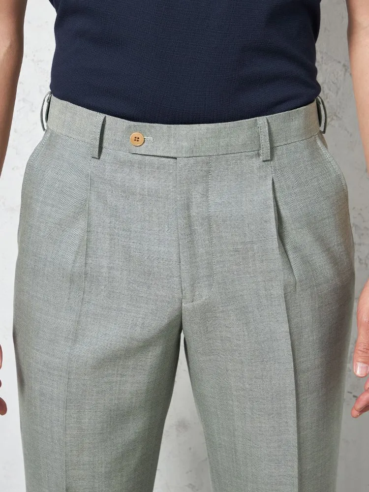 【ウール100%】パンツ ワンタック イタリア マルラーネ社製生地 ライトグリーン 無地 RUCKEN BACCHAR