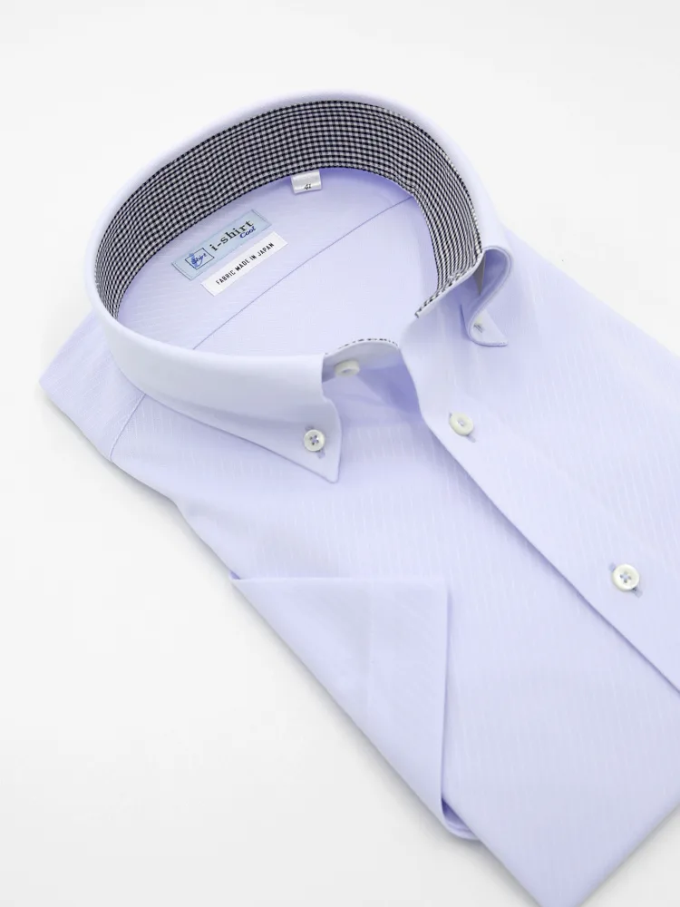 【完全ノーアイロン】半袖アイシャツボタンダウン【バイオセンサークール生地使用】高通気冷感織柄無地ワイシャツi-shirt春夏
