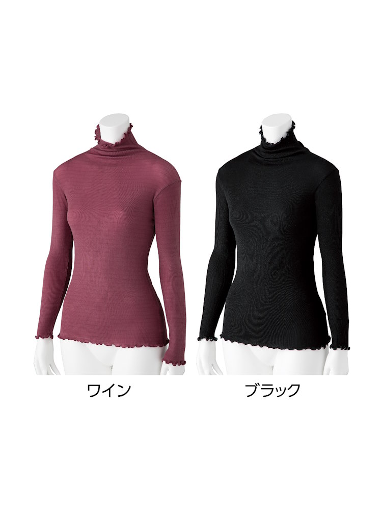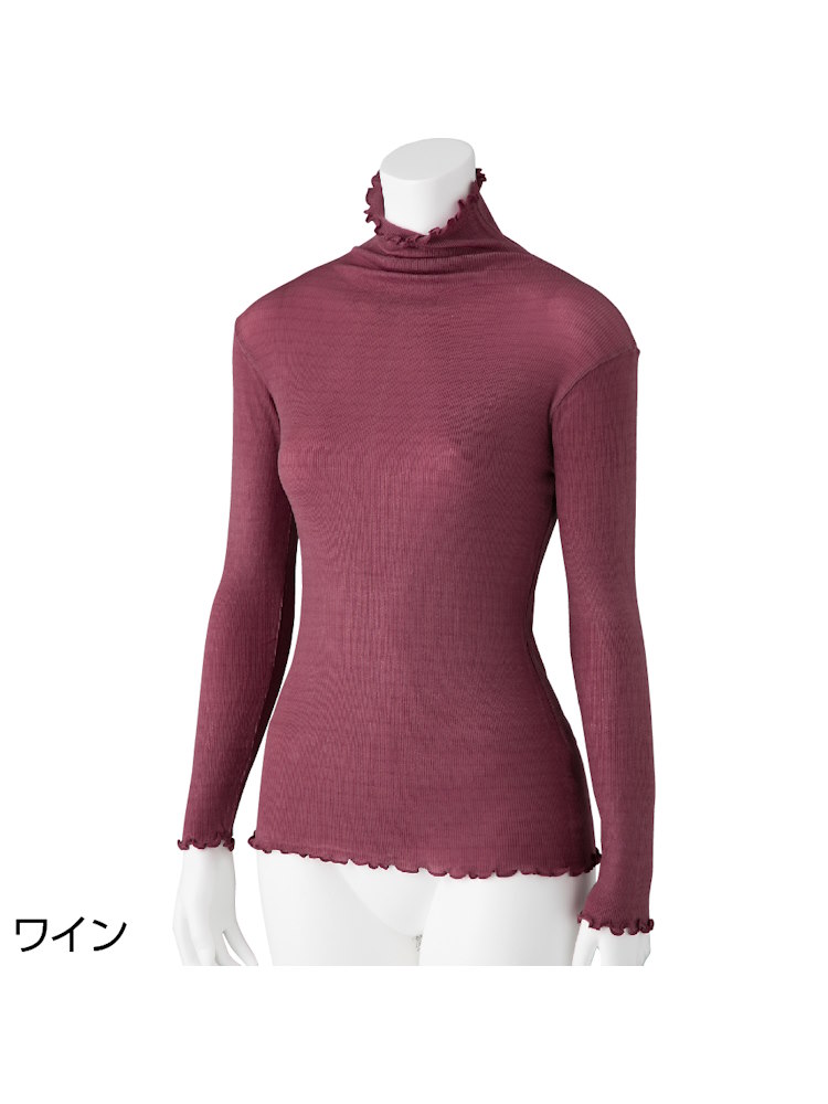 レディース スルッとのびのび長袖インナータートルネック【CF】(ワイン)