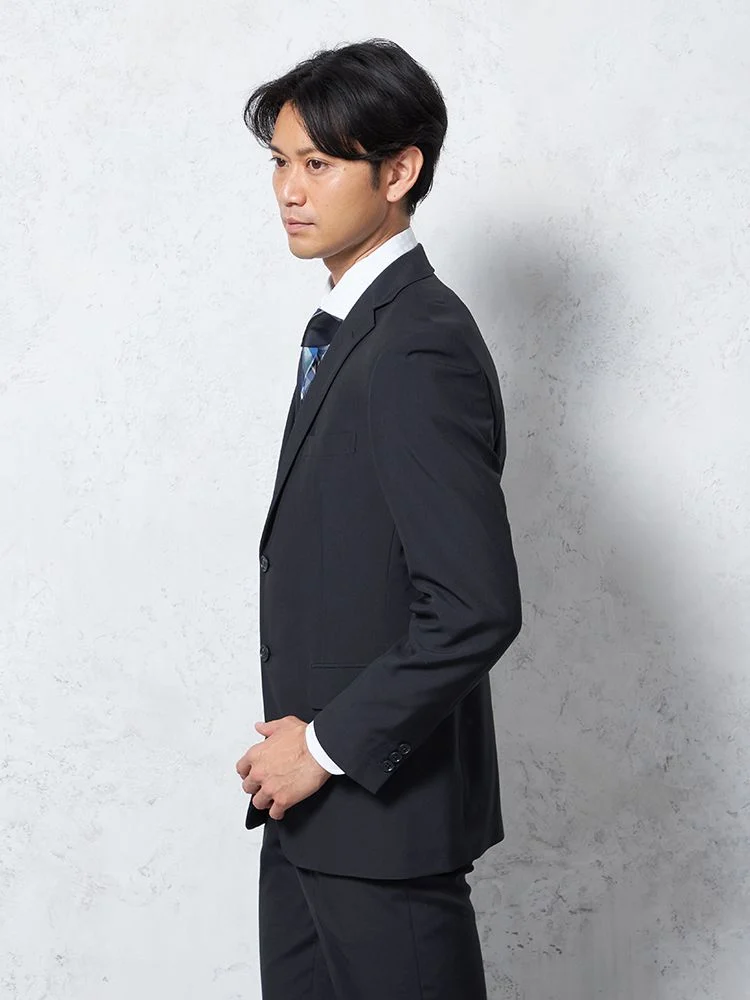 切り込みが1本のセンターベントデザインです。細身でスッキリとしたシルエットが特徴で、快適な着心地を提供します