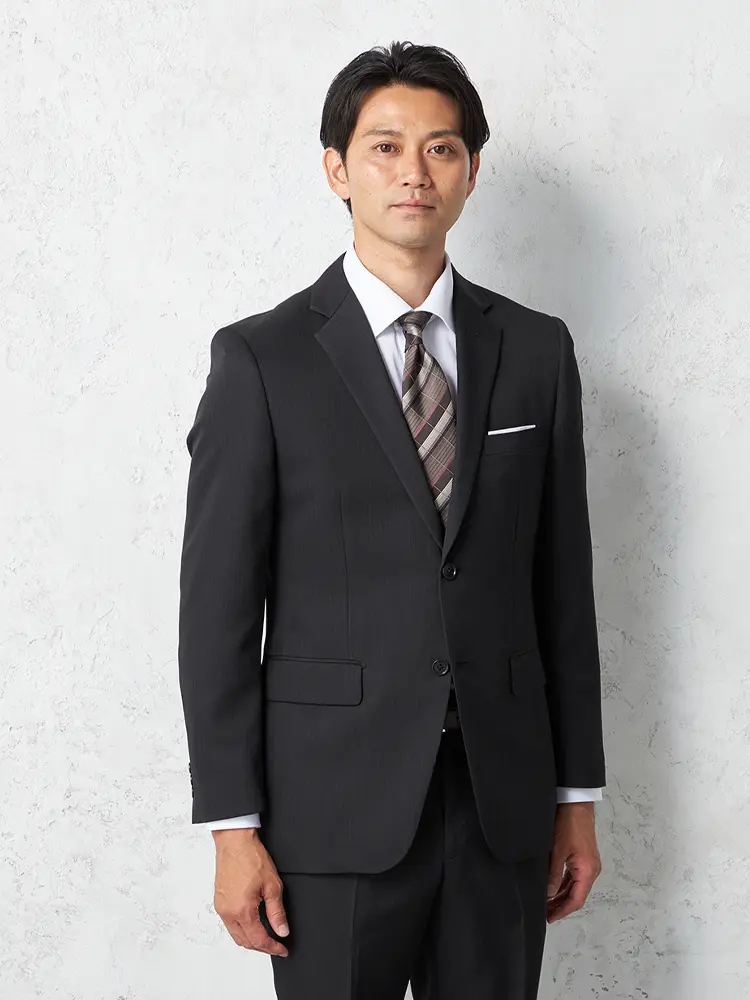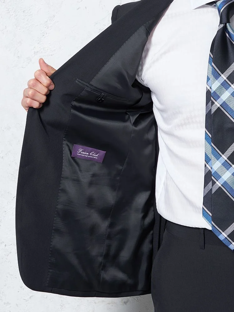 【上下ウォッシャブル】スーツ 2つボタン イージーケア ストライプ フュージョンクラブ(ブラック)
