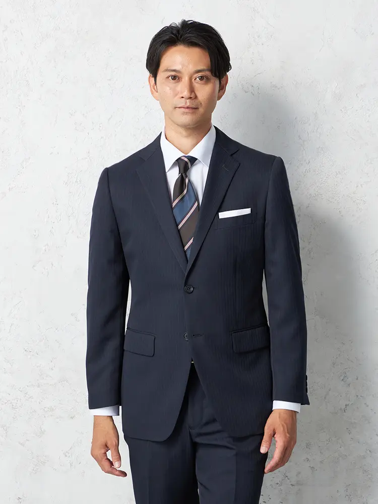 【上下ウォッシャブル】スーツ2つボタンイージーケアネイビーストライプフュージョンクラブ