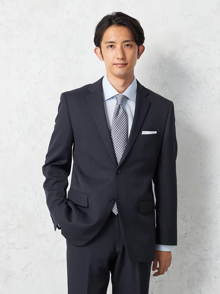 【上下ウォッシャブル】スーツ 2つボタン イージーケア ネイビー ストライプ フュージョンクラブ