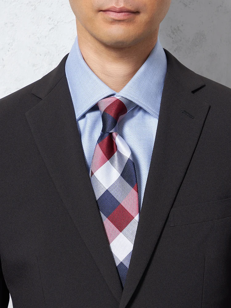 【即納】スーツ 2つボタン【WEB限定】4WAYストレッチ マイクロチェック ネイビー