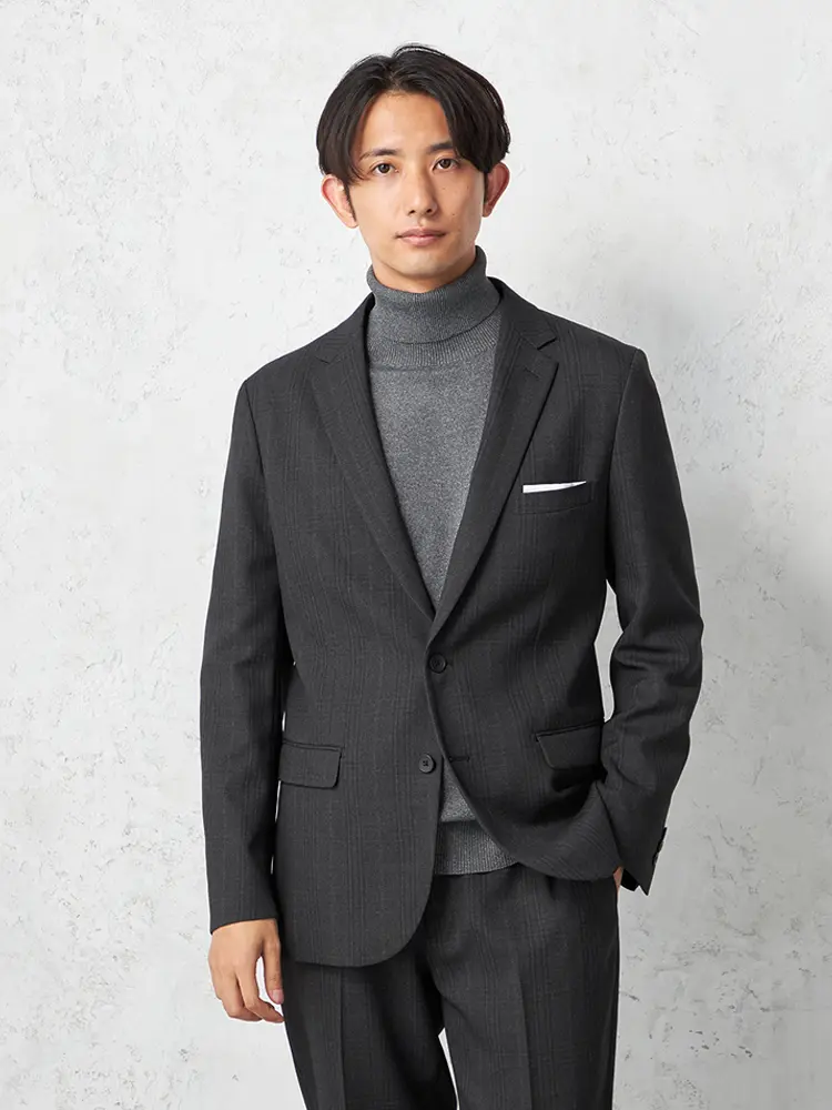 切り込みが1本のセンターベントデザインです。細身でスッキリとしたシルエットが特徴で、快適な着心地を提供します