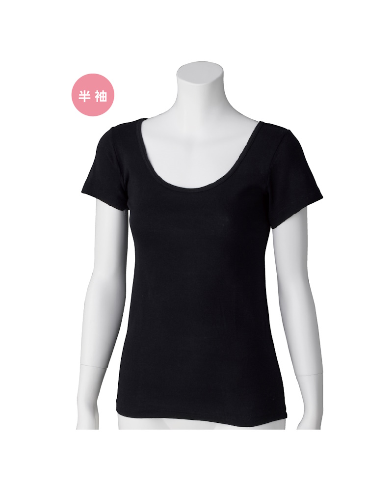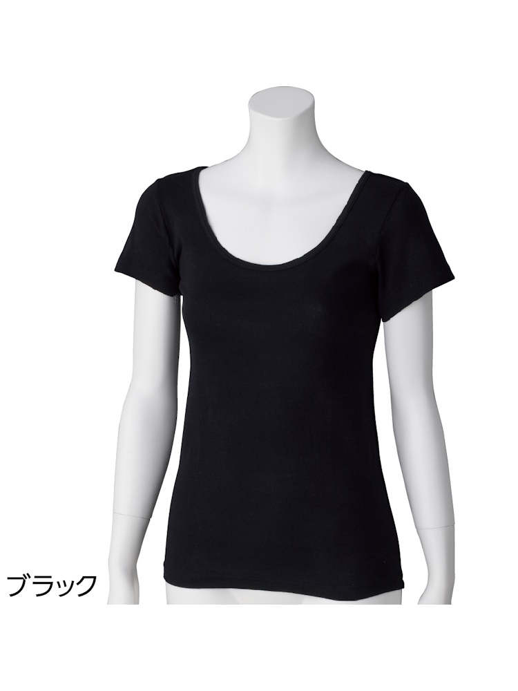 気になる臭いを抑える消臭半袖インナー/婦人用/レディース/肌着/下着/消臭効果/加齢臭対策/部屋干し臭対応/抗菌効果/綿100% 【CF】(ブラック)