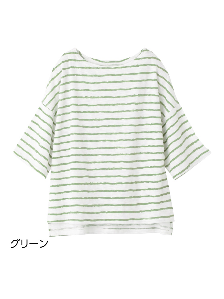 • ブラック 6分袖ゆったり綿混ボーダーTシャツ/レディース/婦人用/シニア/ボーダー/おしゃれ 【CF】 | はるやま公式通販