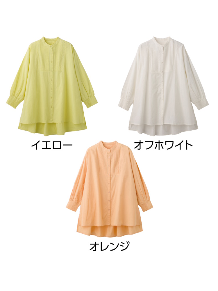 ピンタック入りブラウス/婦人用/レディース/前開き/後ろ長め/ 【CF】(オフホワイト)