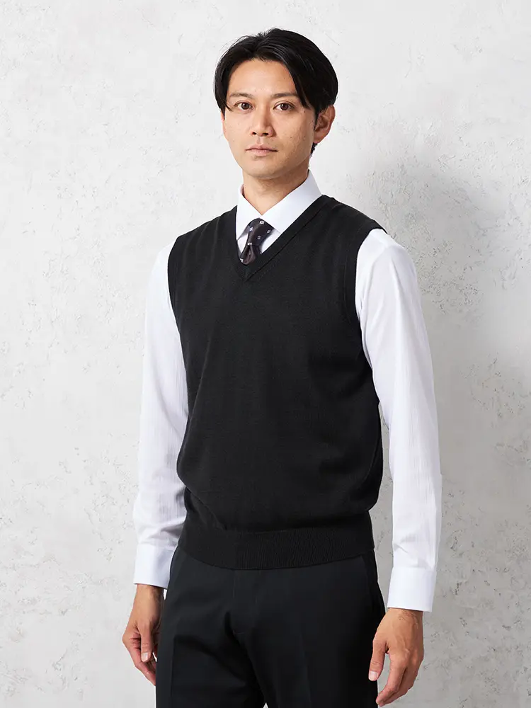 【ウォッシャブル】ヘリンボーン柄ニットジレ放電抗ピリングヘリンボンベストリッケンバッカー秋冬