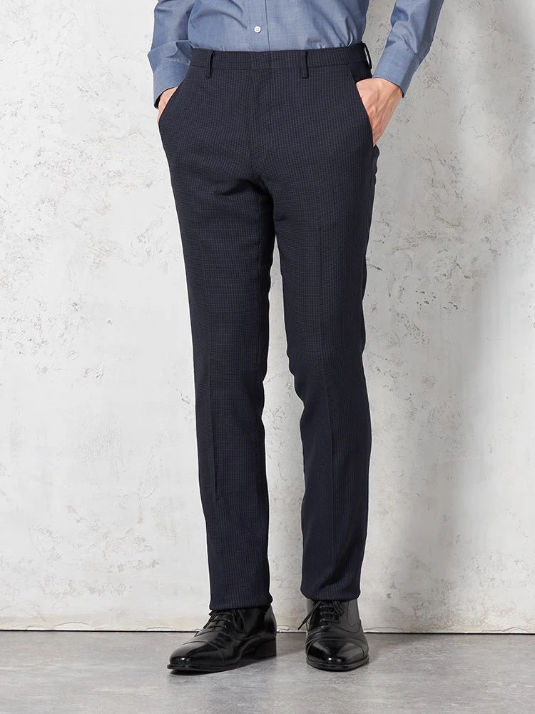 【ウォッシャブル】パンツ ノータック 裏起毛 スラックス 千鳥柄 nero 秋冬