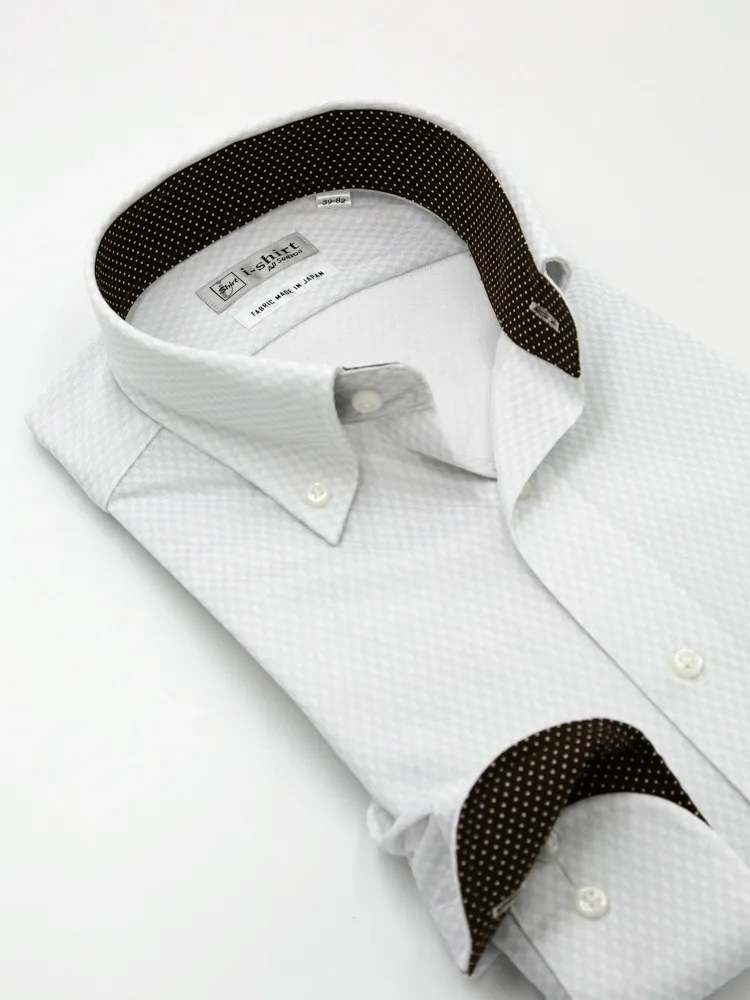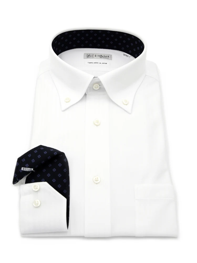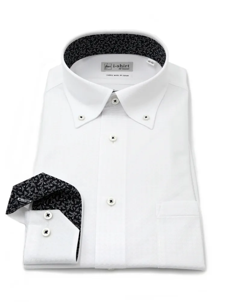 【完全ノーアイロン】長袖アイシャツボタンダウン吸水速乾ストレッチダイヤ織柄無地ワイシャツi-shirt通年