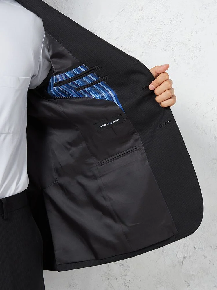 【KATHARINE E HAMNETT-キャサリン・イー・ハムネット-】スーツ 2つボタン 上下ウォッシャブル サスティナブルウール ブラック ストライプ 秋冬