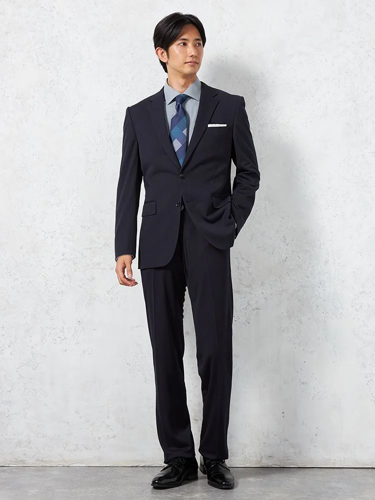 【上下ウォッシャブル】スーツ2つボタン抗ピリング加工ストレッチウインドペンネイビー【i-Suit-アイスーツ-】秋冬