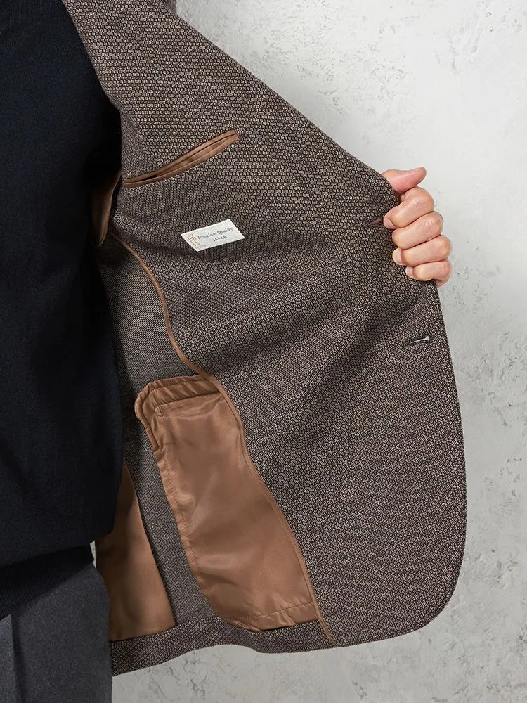 【尾州ニット生地】ジャケット 2つボタン 国産素材 ストレッチ 小柄 ブラウン リッケンバッカー 秋冬