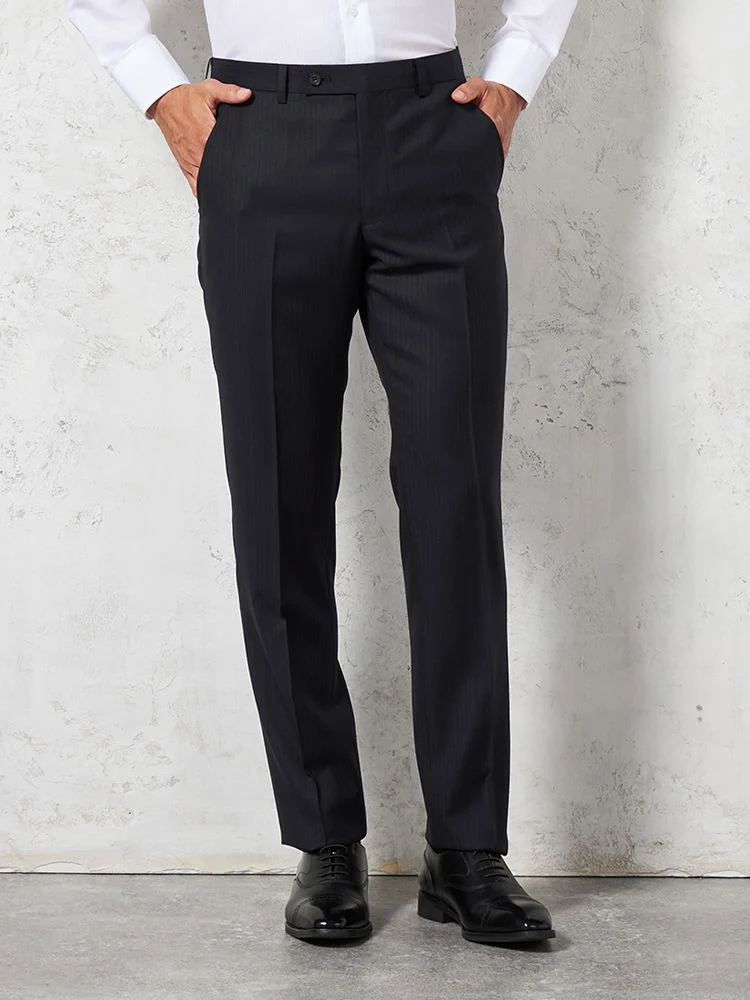 上品な印象に着こなせるネイビー×シャドウストライプ。