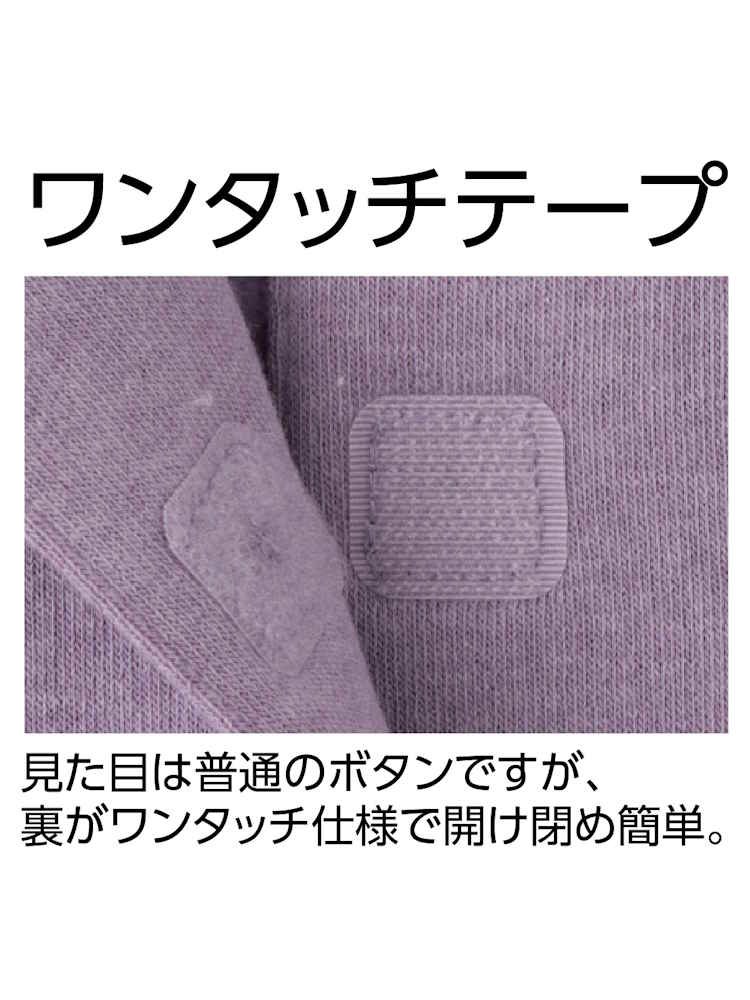 見た目は普通のボタンですが、裏がワンタッチテープ仕様で開け閉め簡単。手や指の負担も安全に軽減できます。
