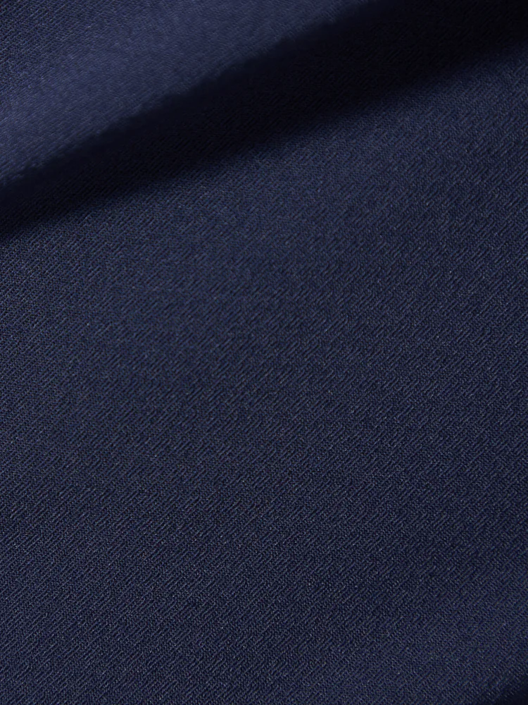 パンツの腰回りに生地の折り込みがなく、スッキリとしたシルエットを実現します。シンプルで洗練された印象を与え、すっきりとした着こなしが可能です。
