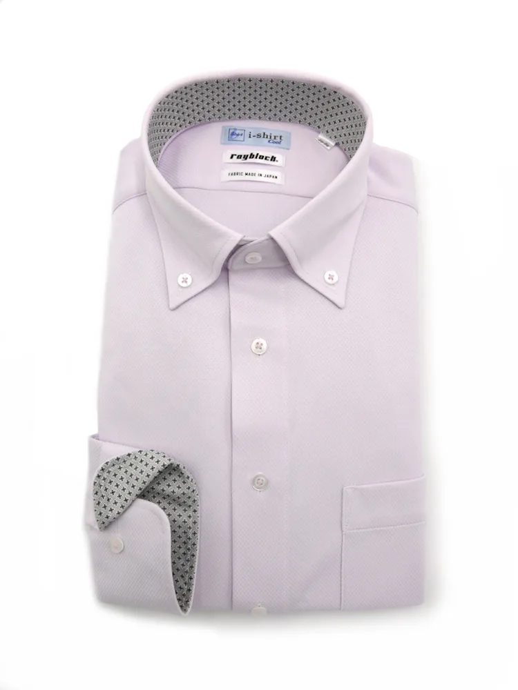 【遮熱・UVカット】Ray block-レイブロック- 長袖 アイシャツ ボタンダウン 織柄無地 ワイシャツ i-shirt 春夏(ホワイト)