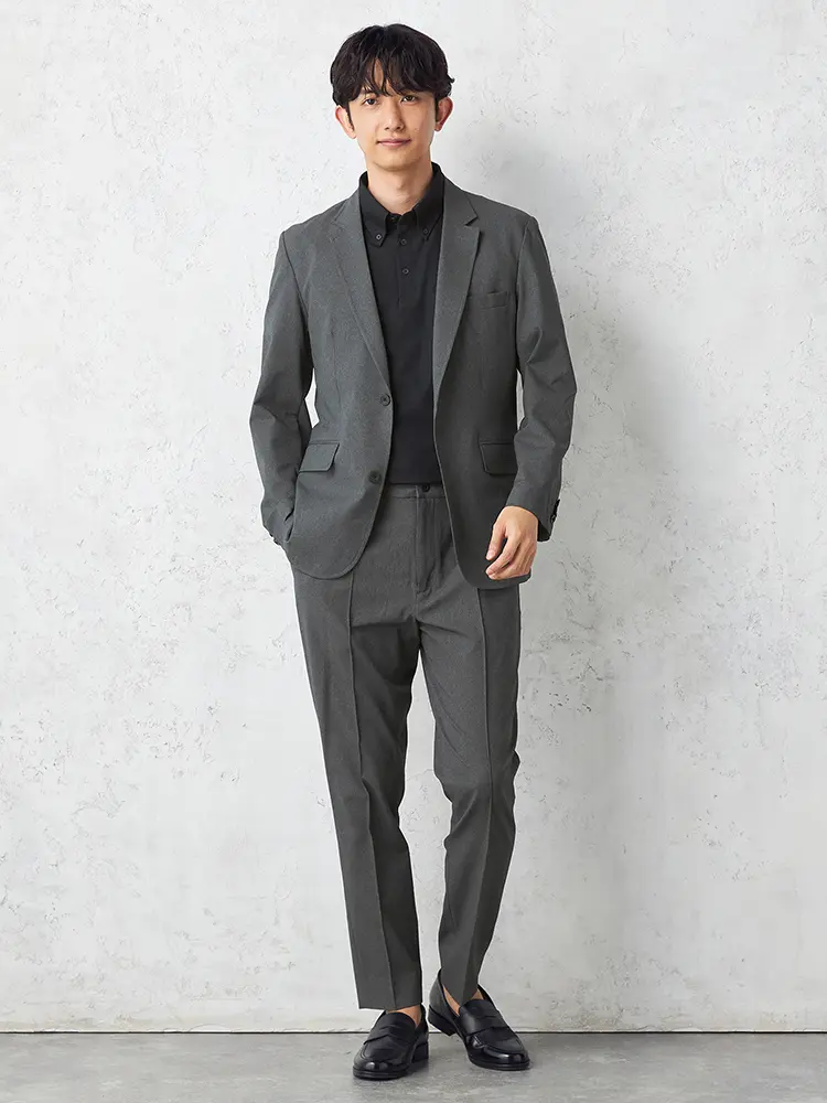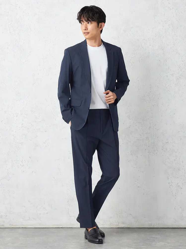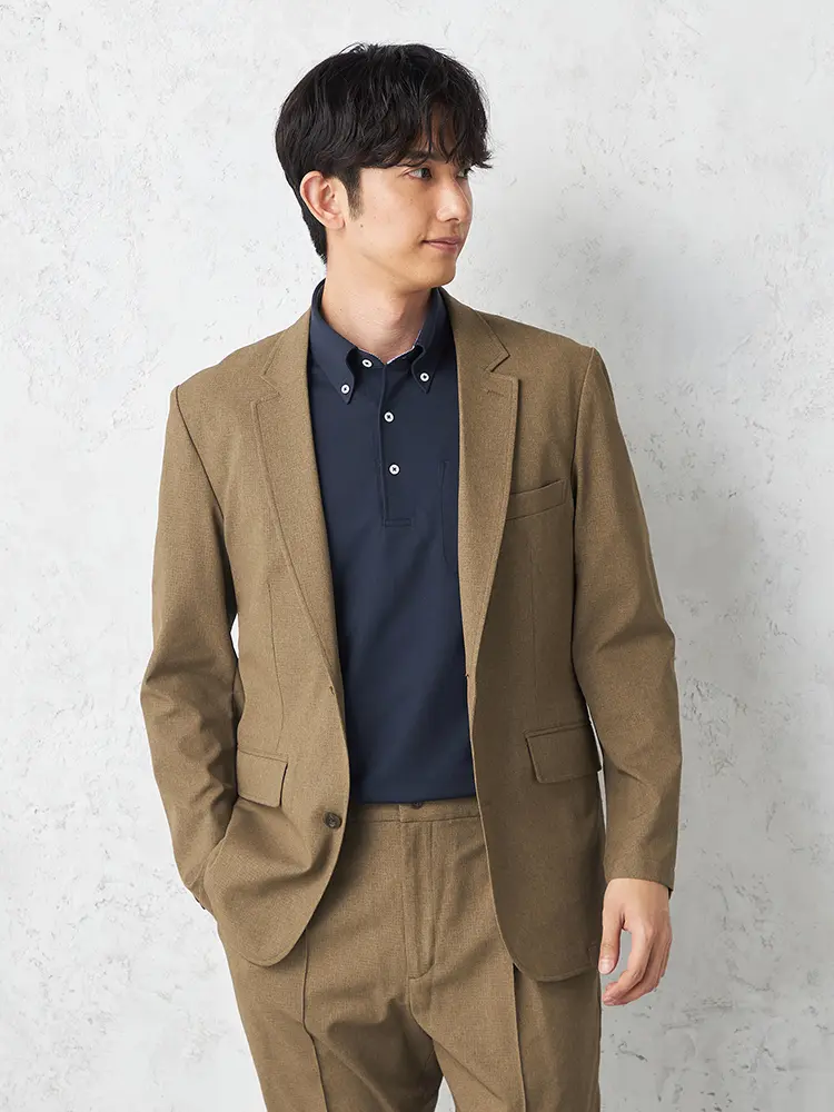 身体の動きを邪魔しないストレッチ素材。軽い着心地でカジュアルなビジネスコーデにも活躍します。