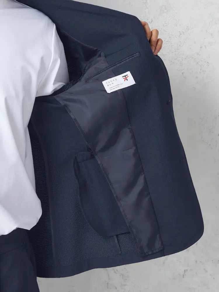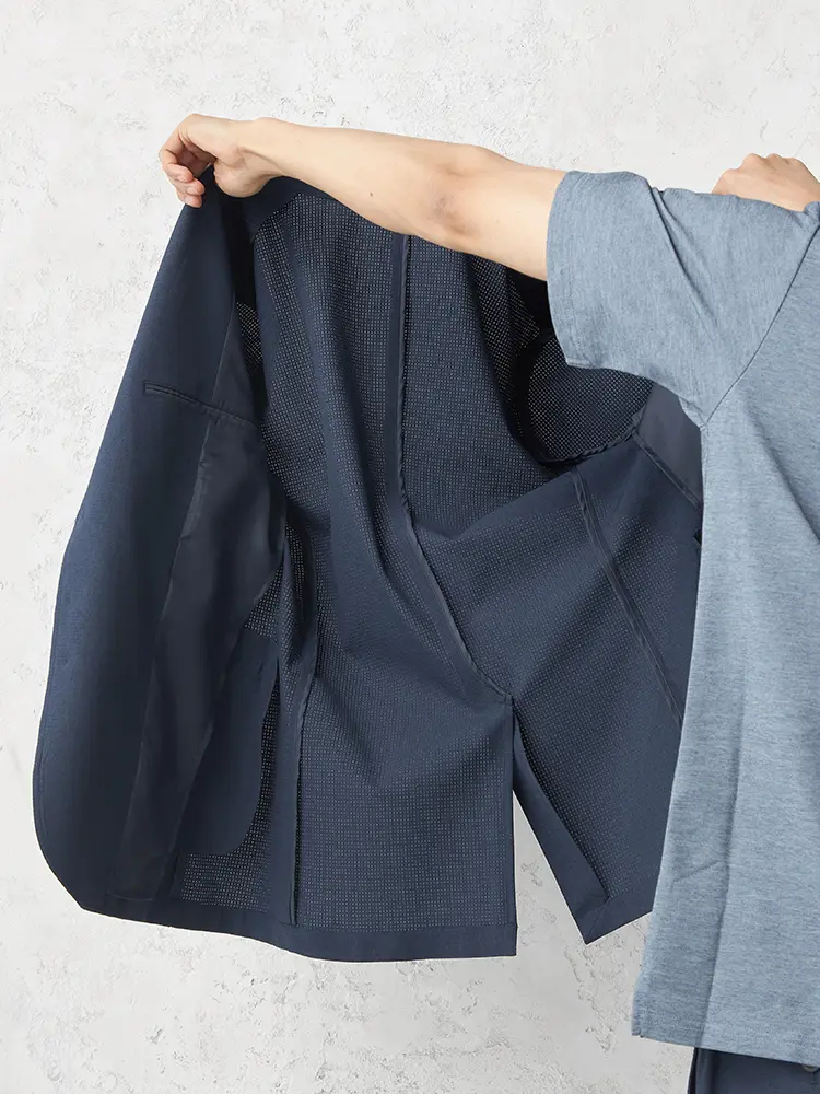 東レDotAir素材を使った夏でも快適な清涼感のあるテーラードジャケット。