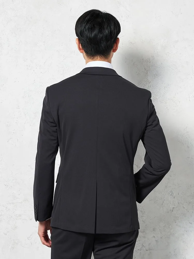 切り込みが1本のセンターベントデザインです。細身でスッキリとしたシルエットが特徴で、快適な着心地を提供します