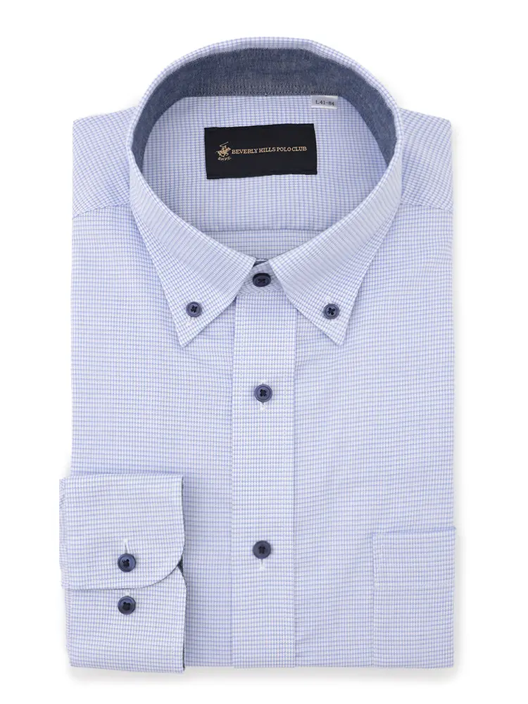 • 【ビバリーヒルズポロクラブ】 サックスチェック 長袖Yシャツ ボタンダウン マイクロチェック 形態安定 通年 | はるやま公式通販