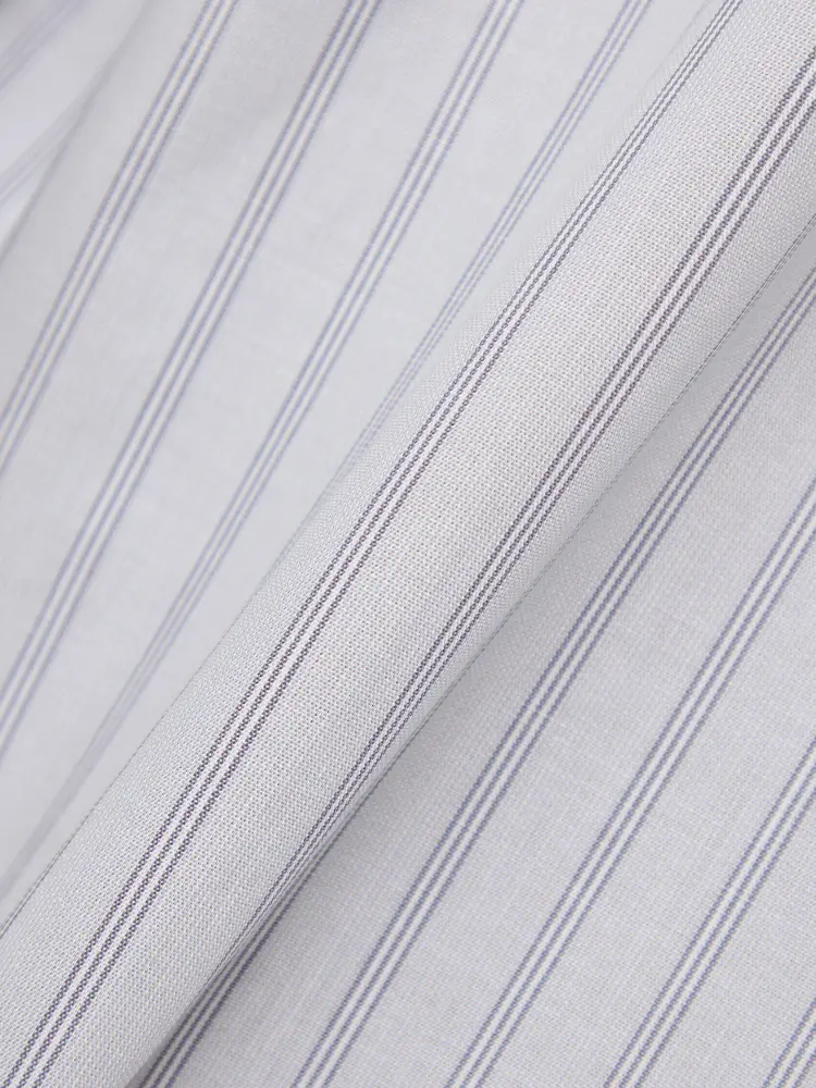 おしゃれな雰囲気ただようストライプ柄の綿100% ビジカジシャツです。