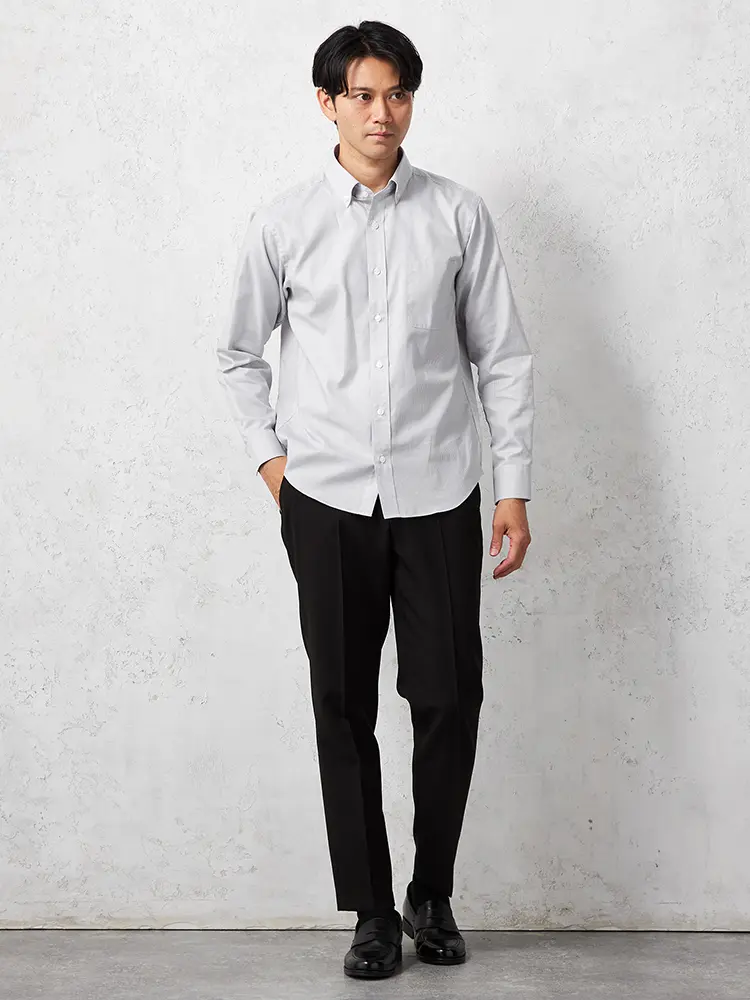 ワードローブにそろえておきたい、毎日のビジネススタイルにぴったりな長袖ボタンダウンシャツです。