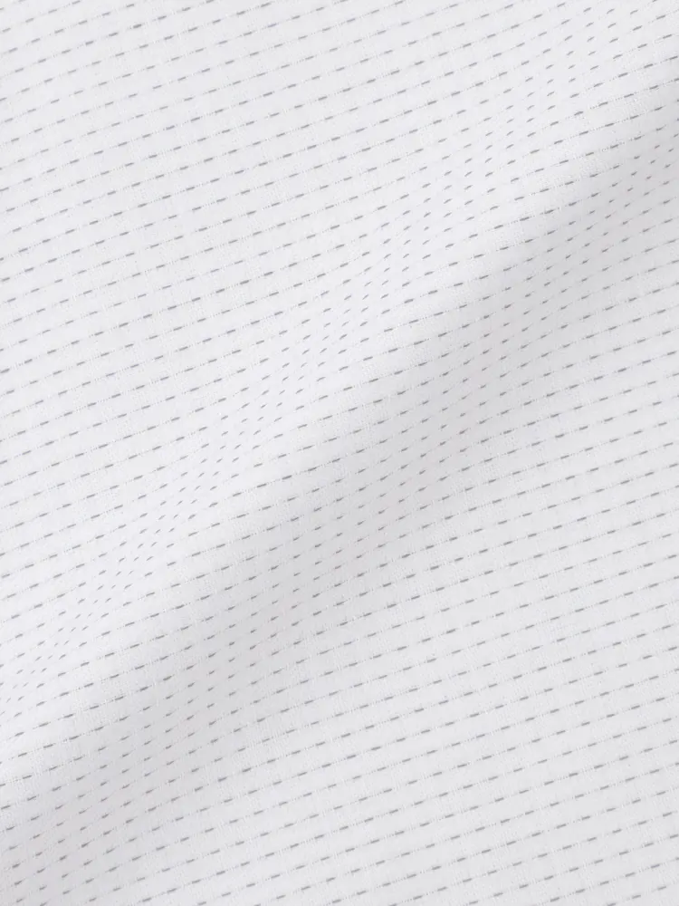 細かなドビー織りがシックな、ホワイトに近いライトグレーの長袖シャツ。