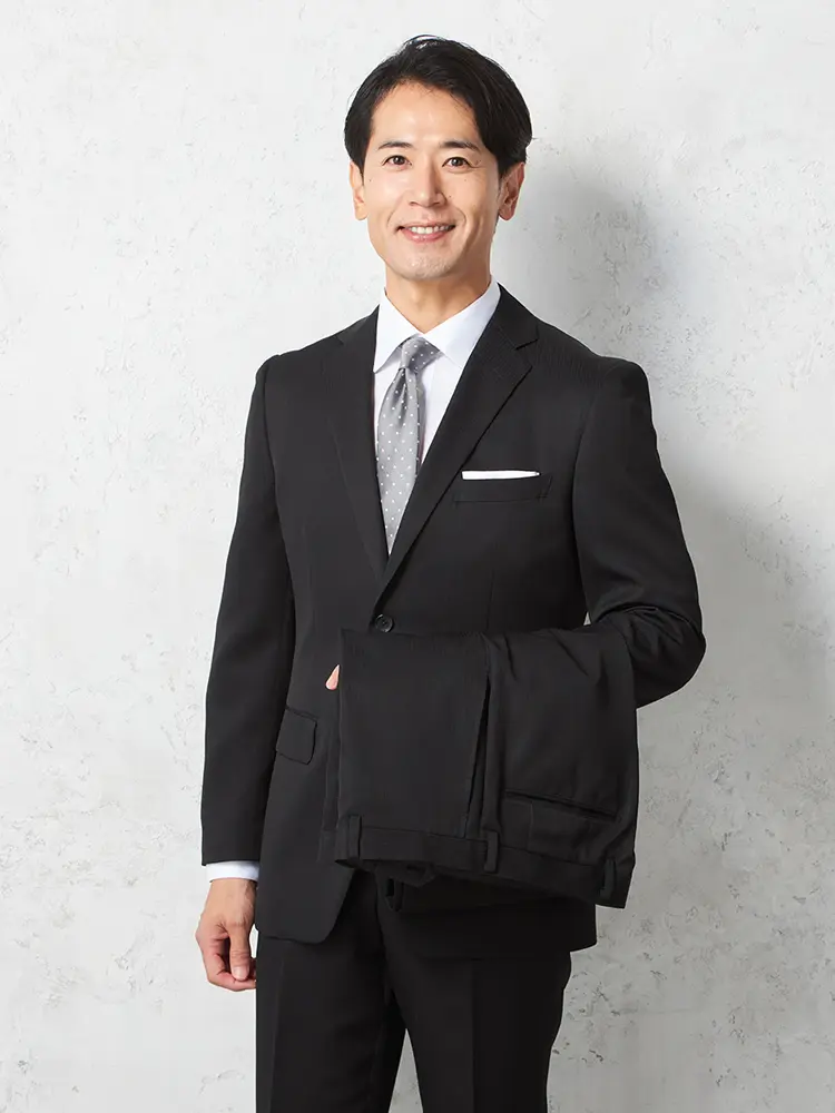 【上下ウォッシャブル】スーツ2つボタンツーパンツイージーケアブラックストライプフュージョンクラブ