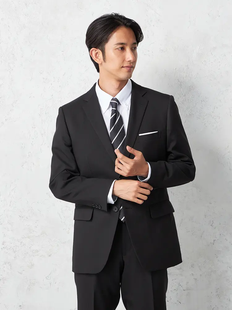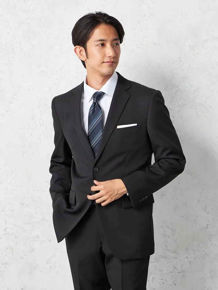 【上下ウォッシャブル】スリーピーススーツ2つボタンウール混ストレッチ・防しわ無地nero秋冬