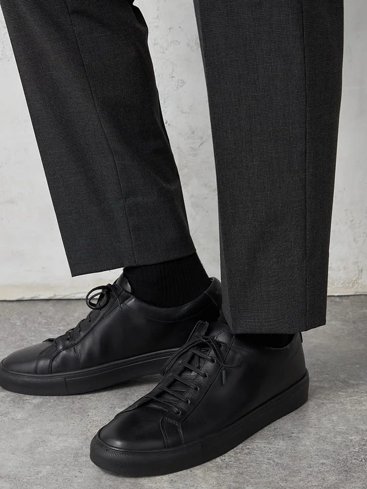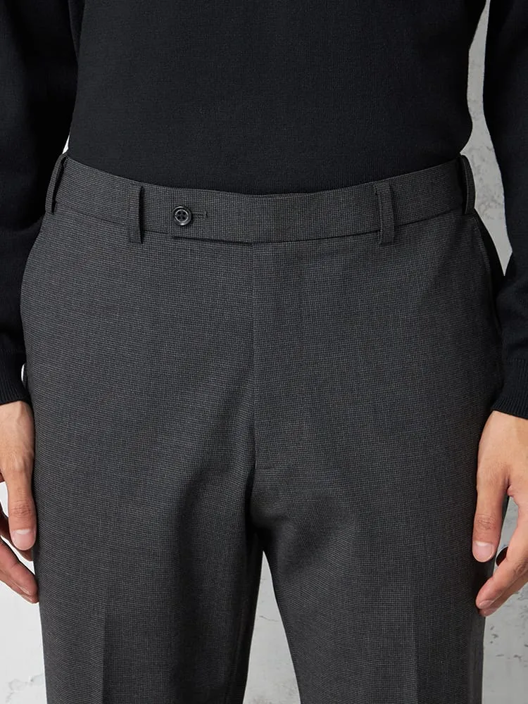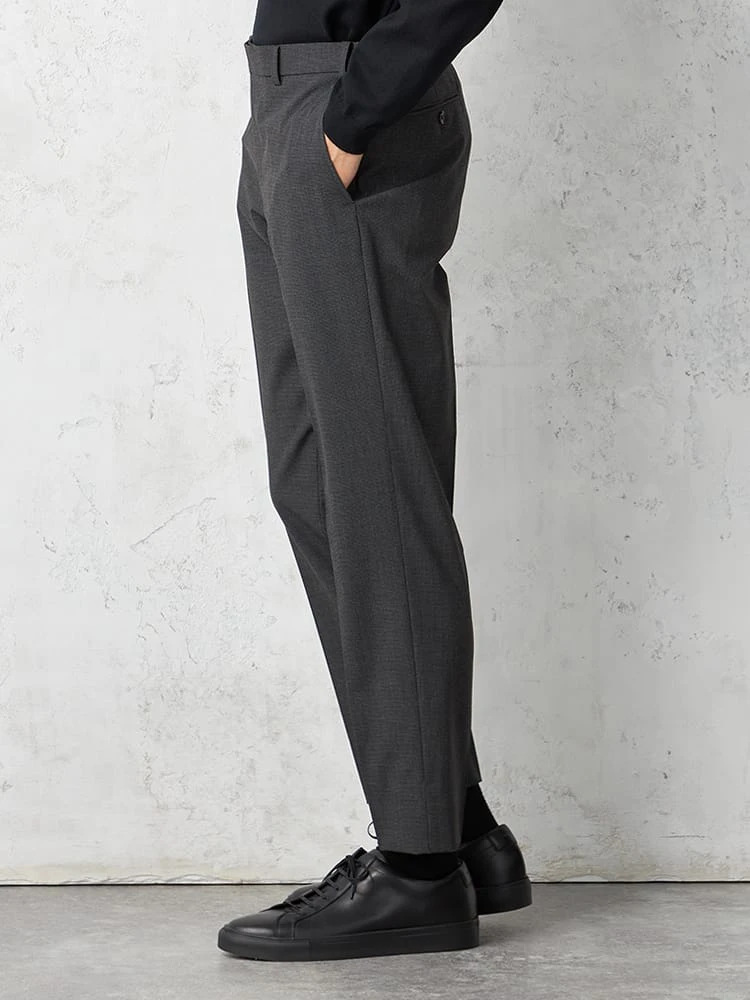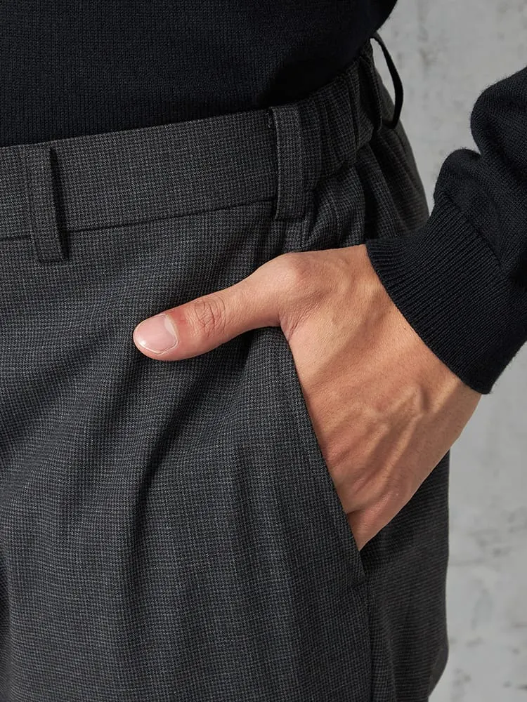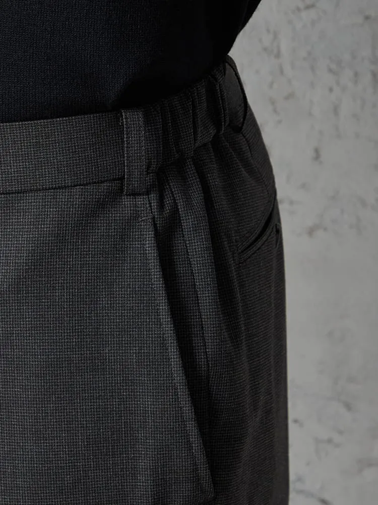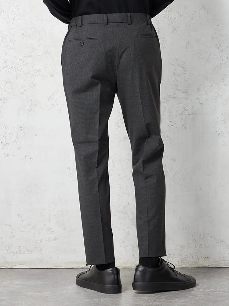 細かなハウンドトゥースチェックのノータックスラックス。