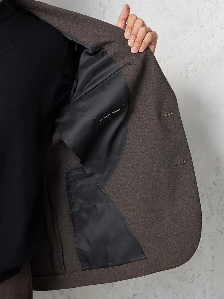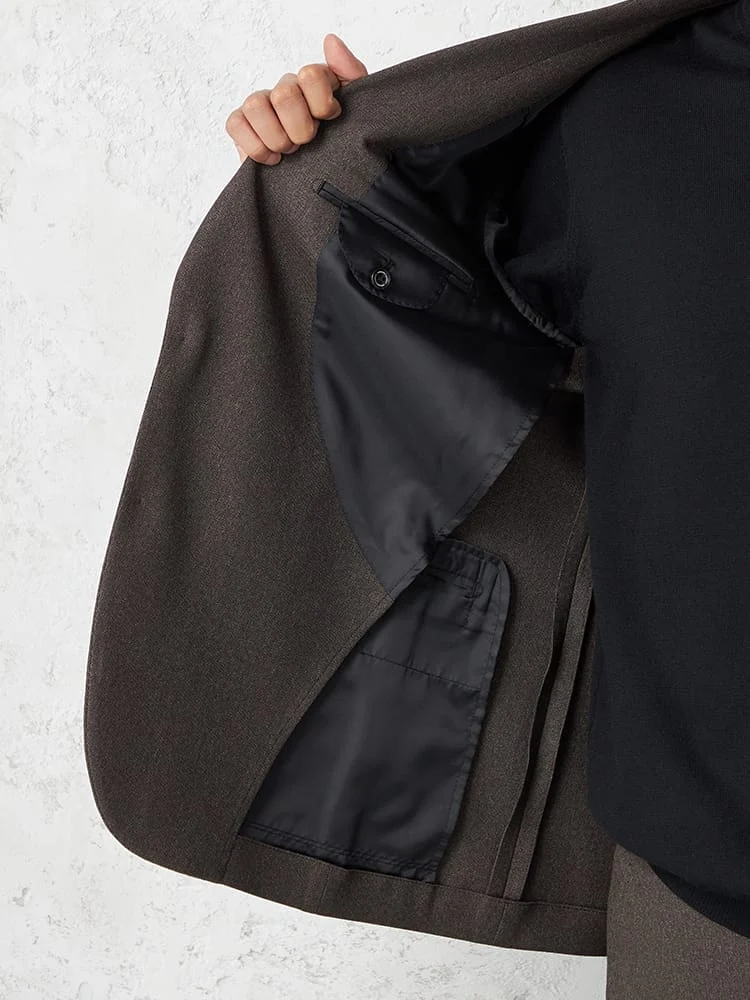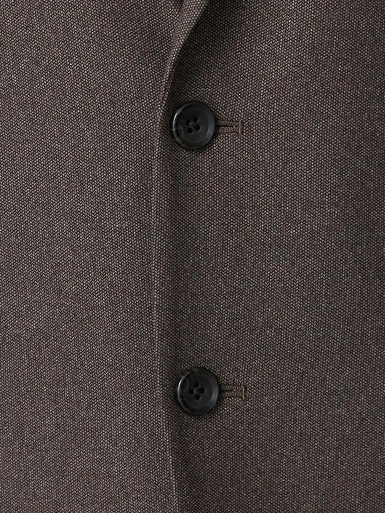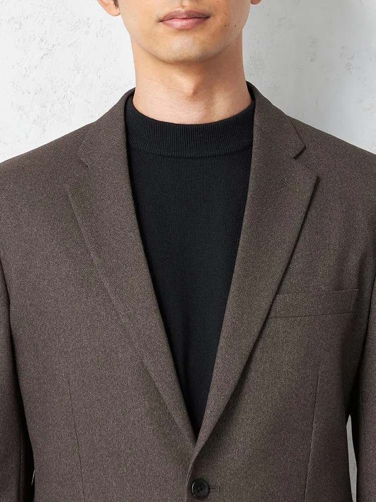 杢柄のブラウンが落ち着いた印象を与える、2つボタンテーラードジャケットです。