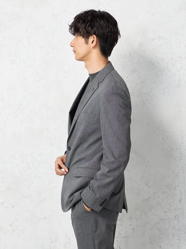 切り込みが1本のセンターベントデザインです。細身でスッキリとしたシルエットが特徴で、快適な着心地を提供します