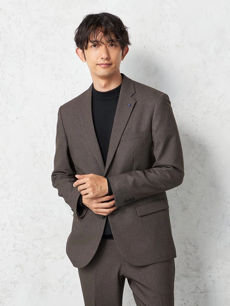 2つボタンのデザインで、クラシックなスタイルを演出。落ち着きと品のあるアイテムです。