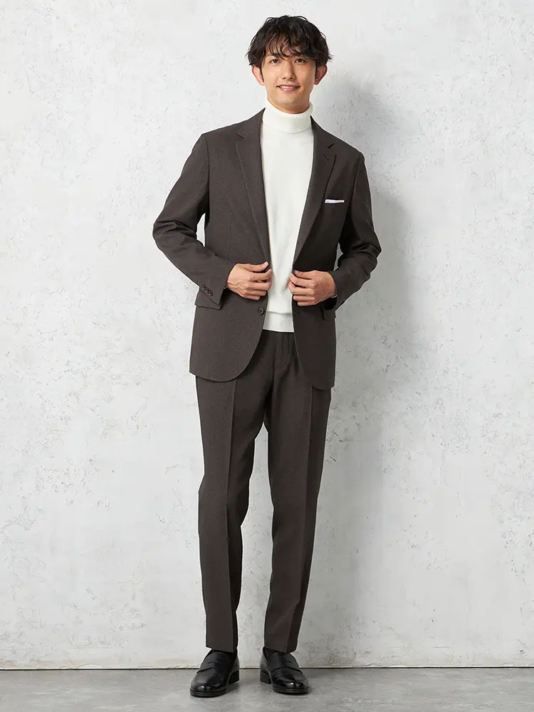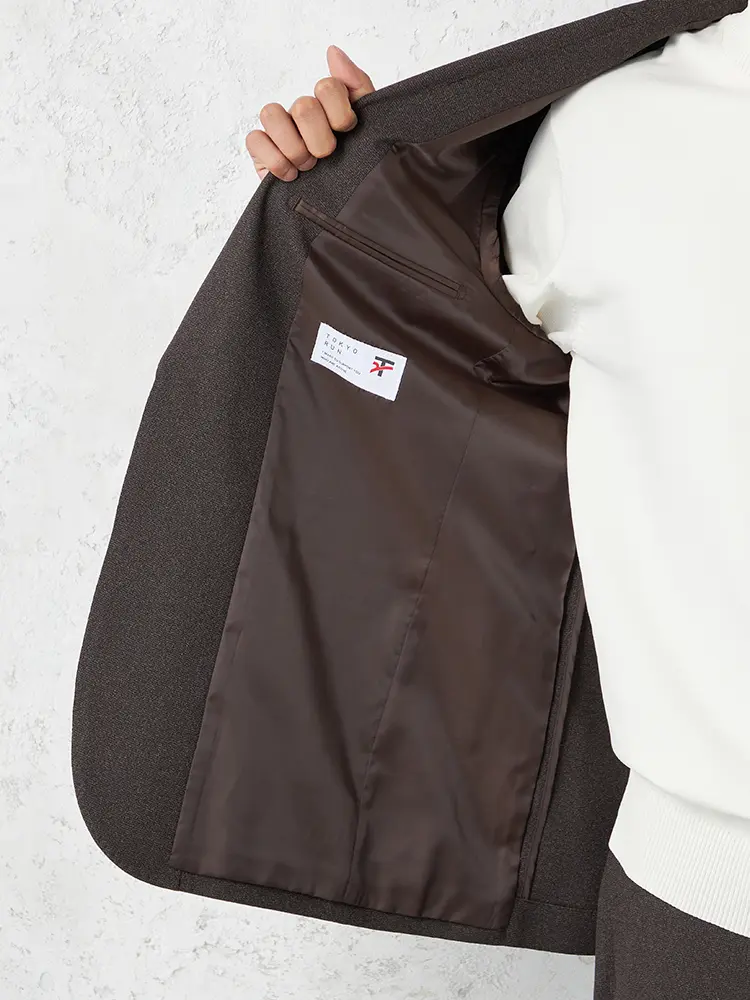 【TOKYO RUN】 セットアップ ジャケット 2つボタン ウォッシャブル ストレッチ 通年(D.ブラウン)