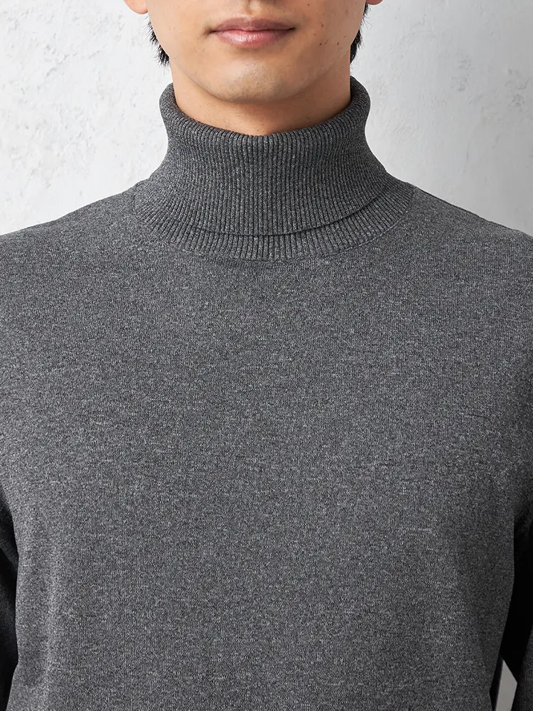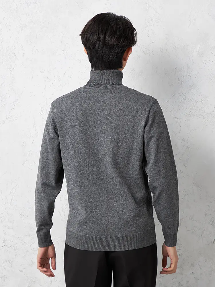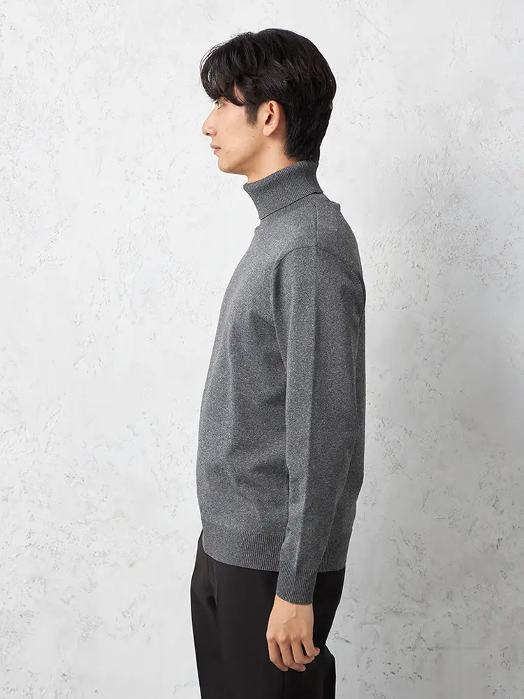 【TOKYO RUN】 14G天竺 タートルネックニット カジュアルインナー 長袖 ウォッシャブル 抗ピリング 吸汗速乾 秋冬(L.グレー)