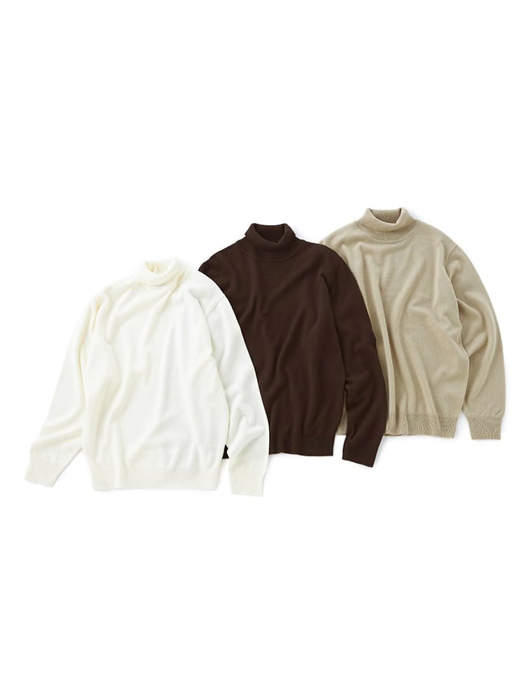 首元のつまり具合がほどよいモックネックで、上品な佇まいに仕上げました。