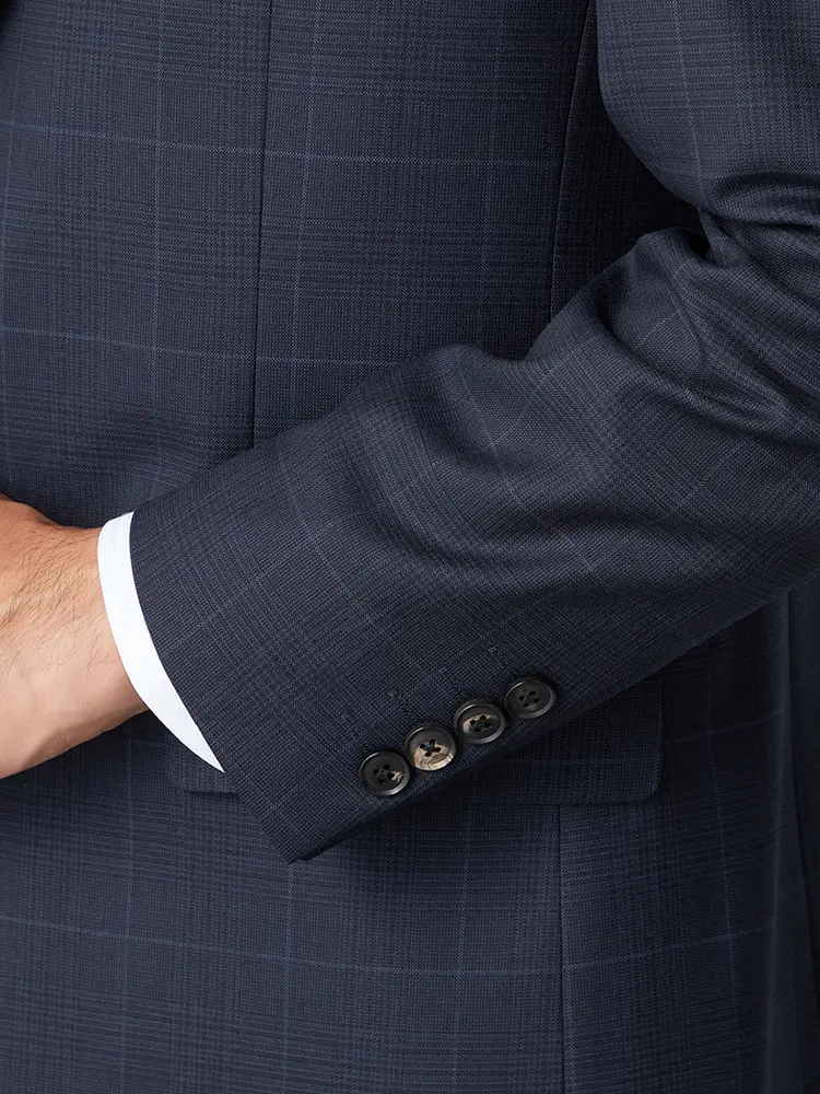 毛芯仕上げのラペルや本水牛のボタンなど、ディテールにもこだわりが感じられます。