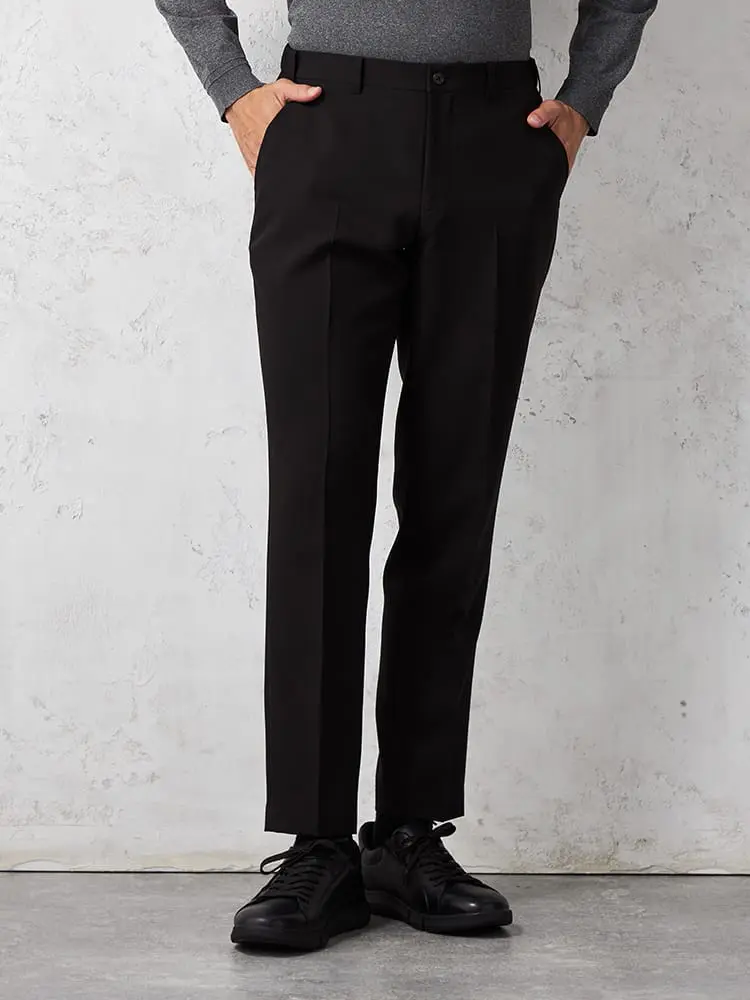 スタイリングをシャープに仕上げるノータックのスラックス。
