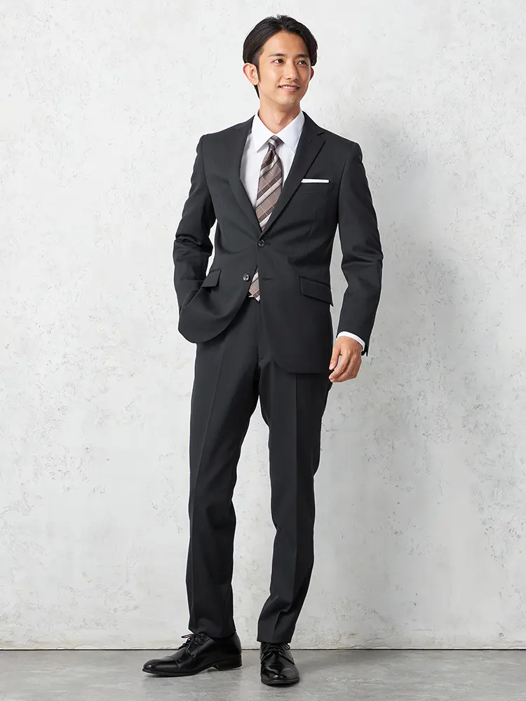 【上下ウォッシャブル】スーツ2つボタンツーパンツイージーケアブラックストライプフュージョンクラブ